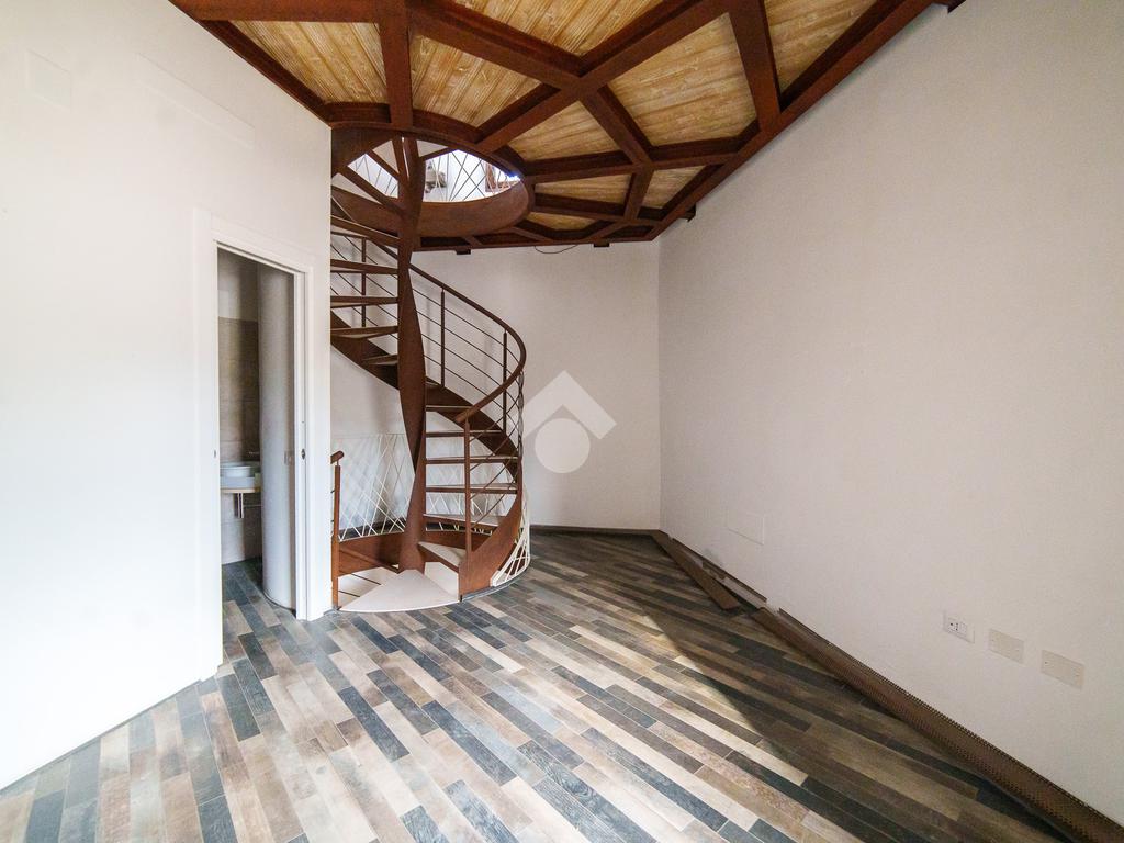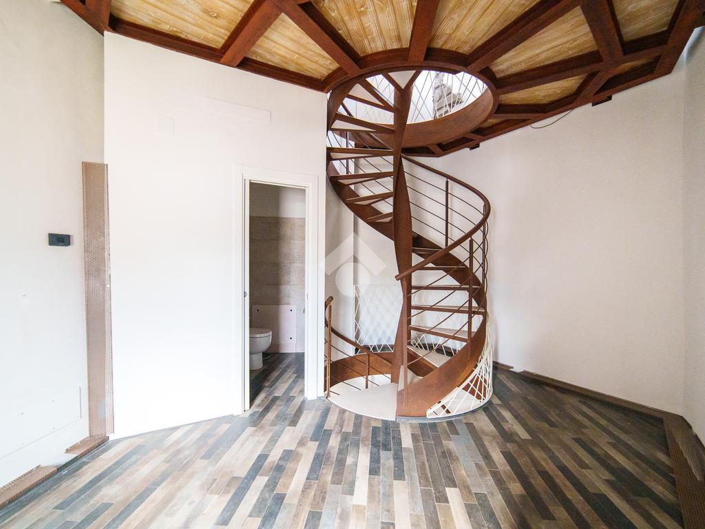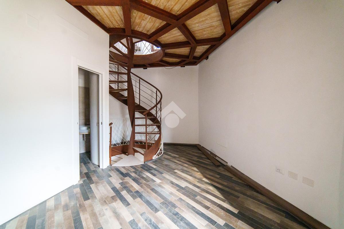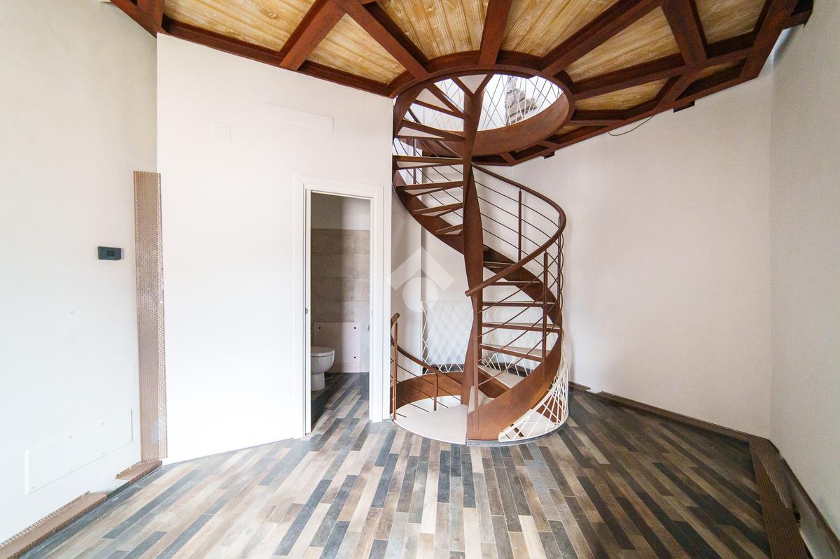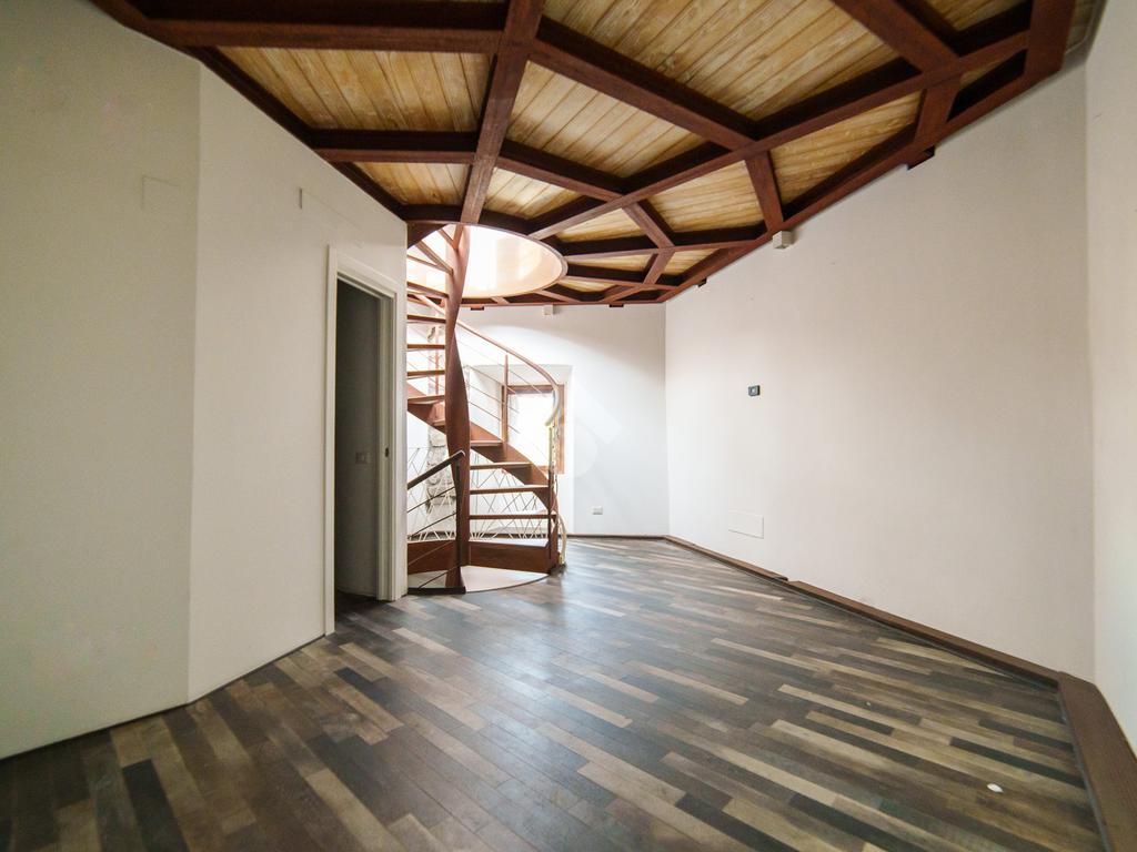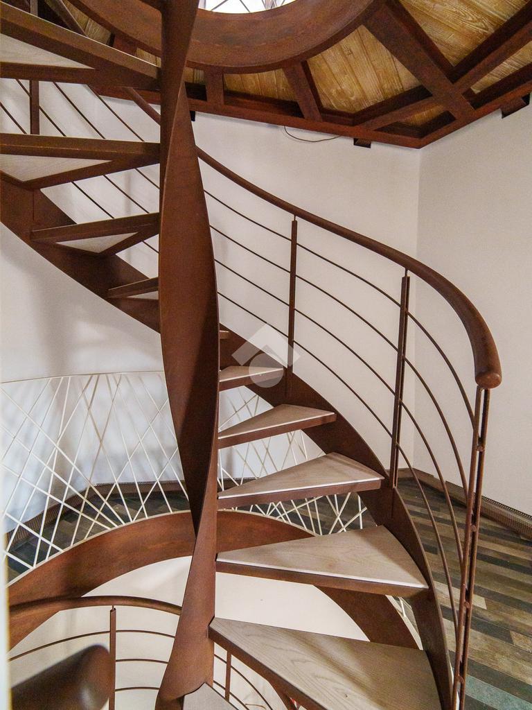 La torre si sviluppa su tre livelli collegati da una scenografica scala a chiocciola in ferro e legno, elemento centrale della casa, e si completa con una splendida terrazza panoramica all’ultimo piano. Da qui, lo sguardo si apre sul centro storico di Viterbo, regalando momenti di quiete e bellezza a ogni ora del giorno.