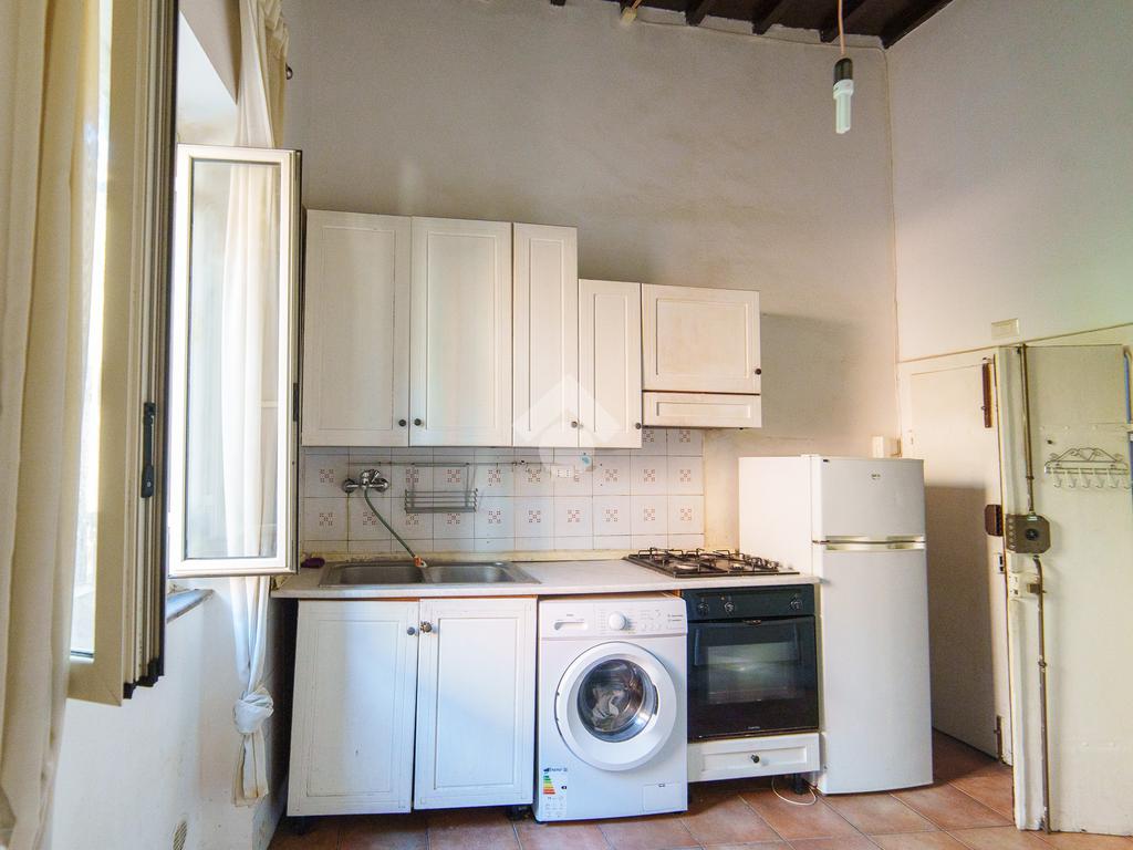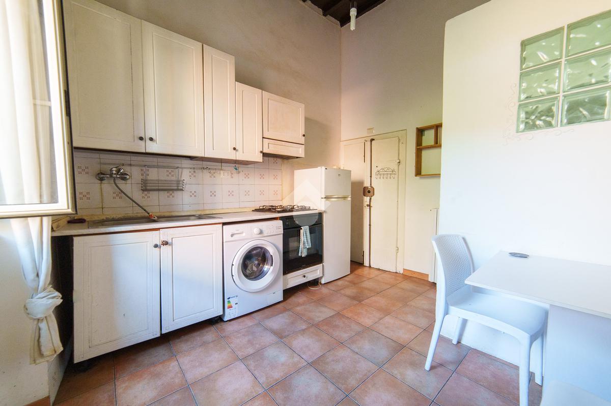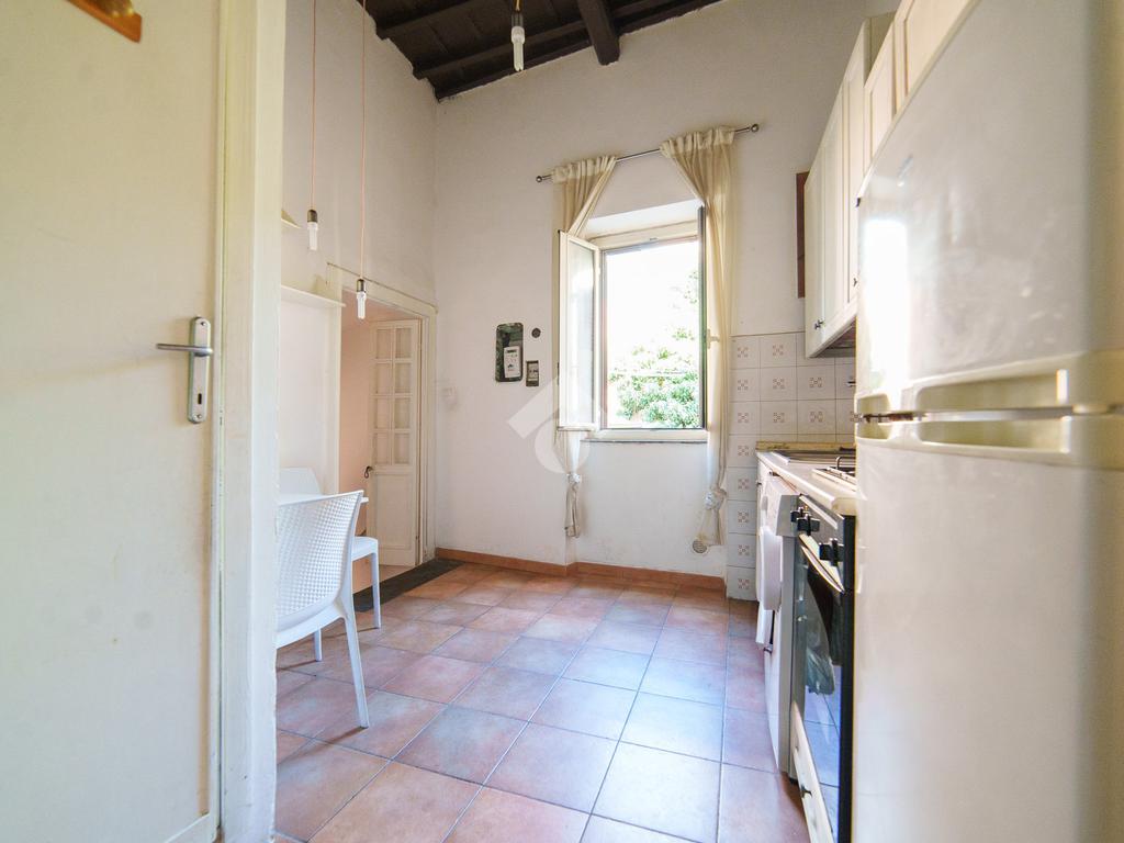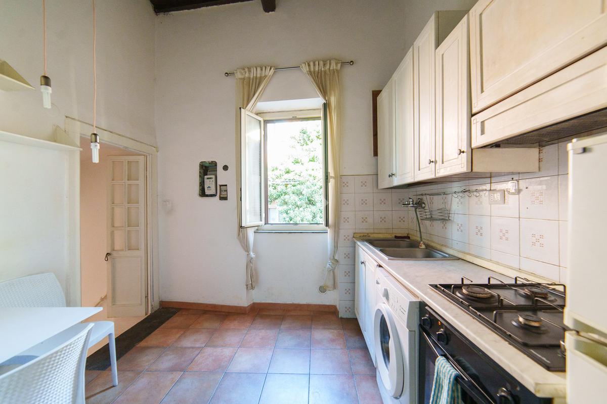 L’ingresso si apre su una cucina abitabile separata, ideale per chi desidera un ambiente funzionale e indipendente per cucinare. Sempre sullo stesso piano troviamo il bagno completo di una comoda doccia.