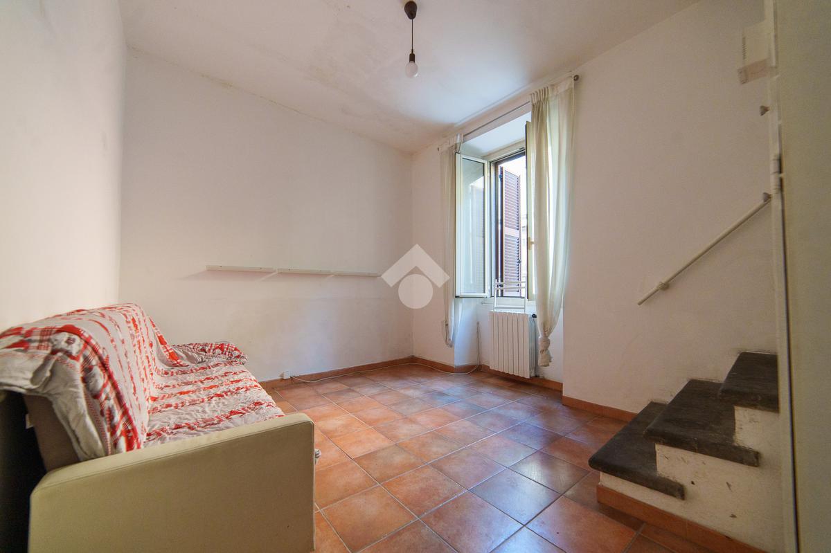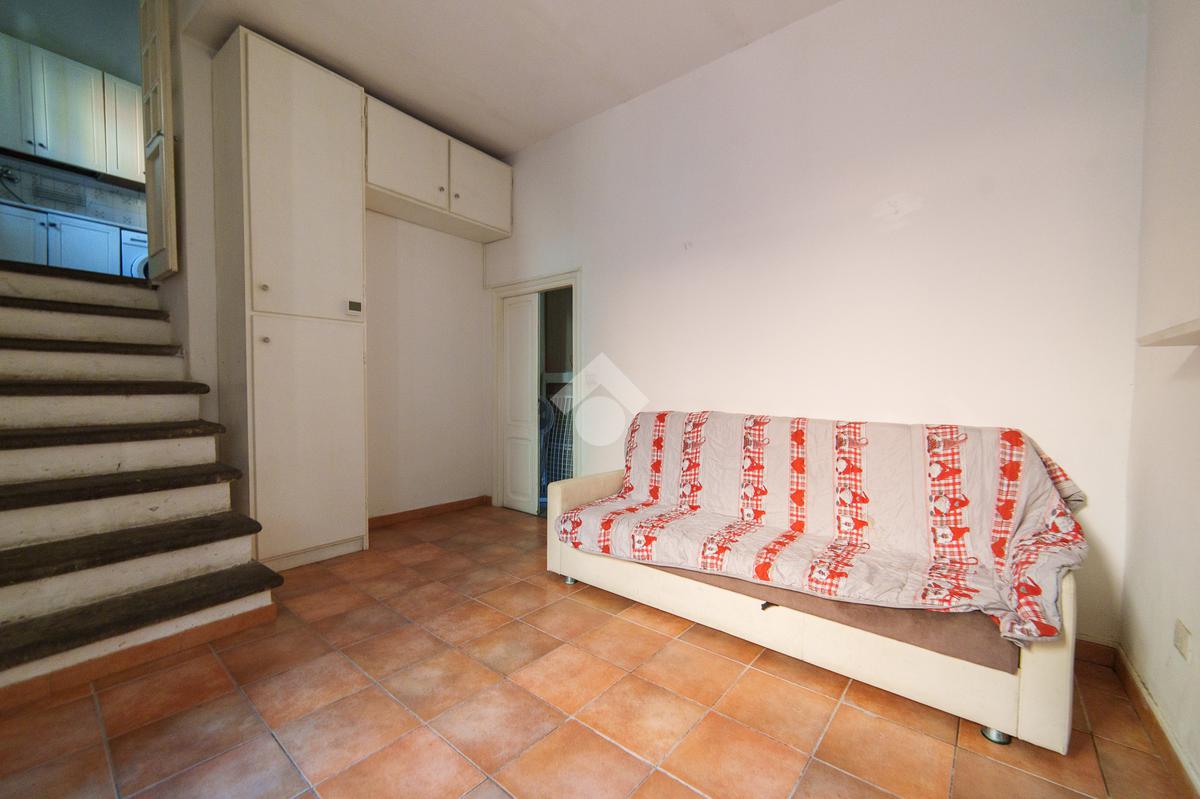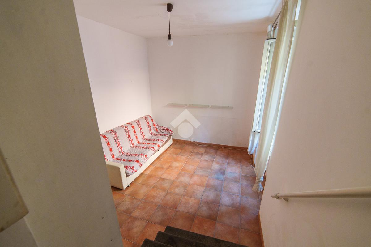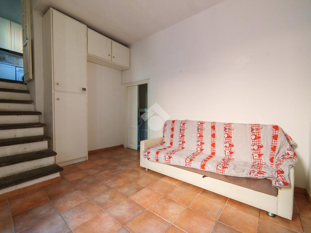 Il piano inferiore ospita un soggiorno di generose dimensioni, perfetto come zona giorno e relax, e una camera da letto raccolta e silenziosa, favorita dalla posizione interna e dalla collocazione al piano inferiore, che garantisce tranquillità e comfort. Le ampie finestre presenti in soggiorno, cucina e camera da letto assicurano una buona luminosità naturale in tutti gli ambienti.